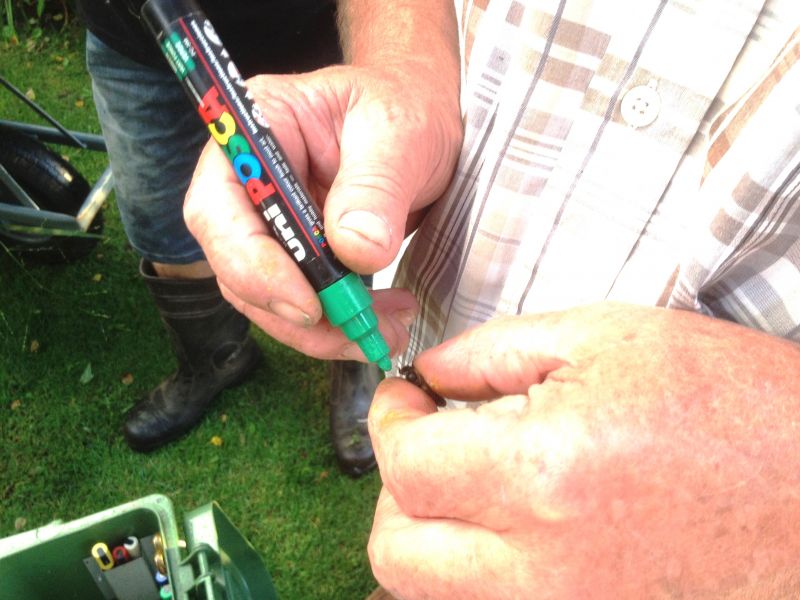 Merken hoeft niet, maar is wel erg handig voor een imker om haar bij contrôles te kunnen vinden en niet per ongeluk te verwonden.