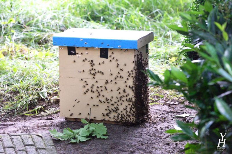 Dan zitten zo goed als alle bijen binnen, kun je hem afsluiten