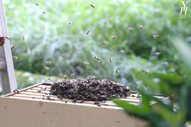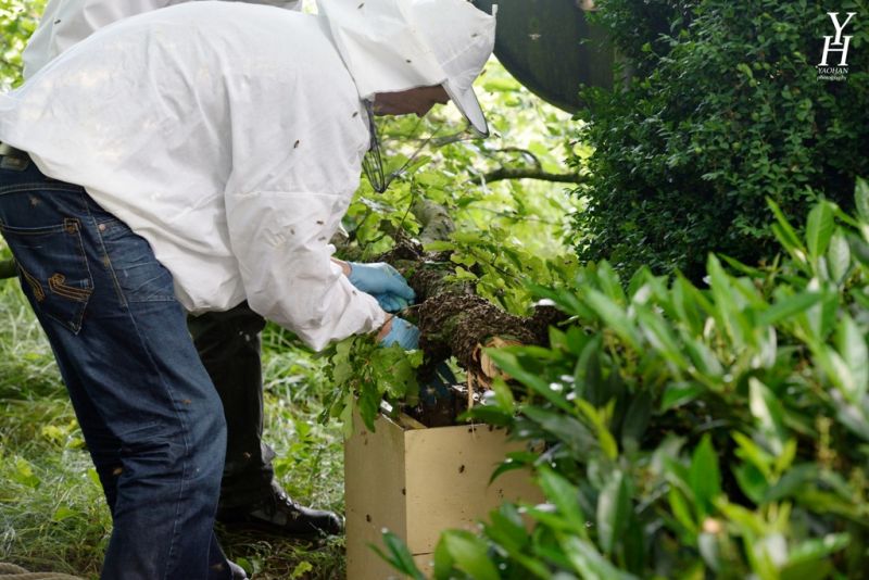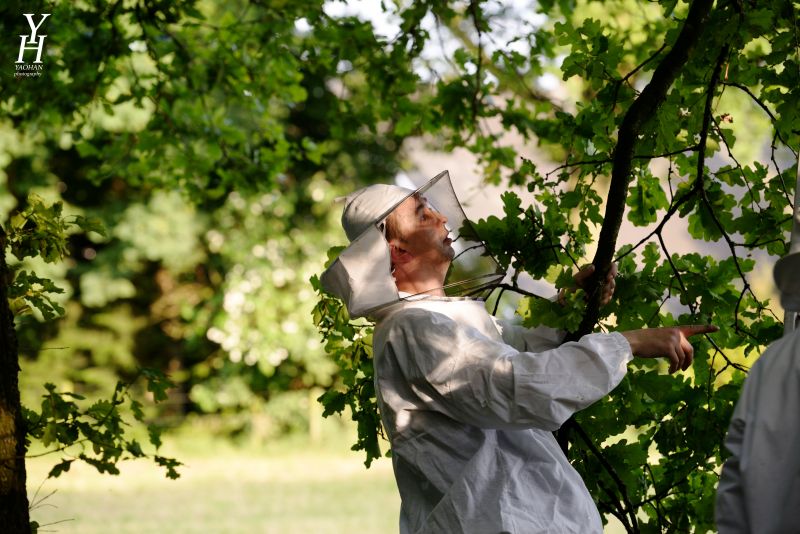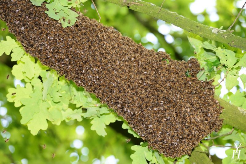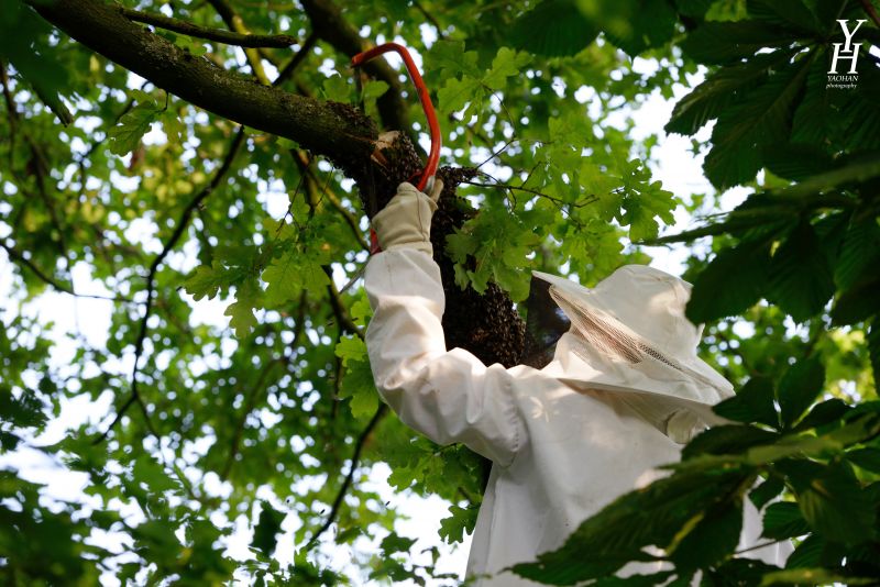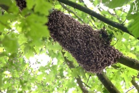 om een zwerm te scheppen. Deze boom zou toch gekapt worden,