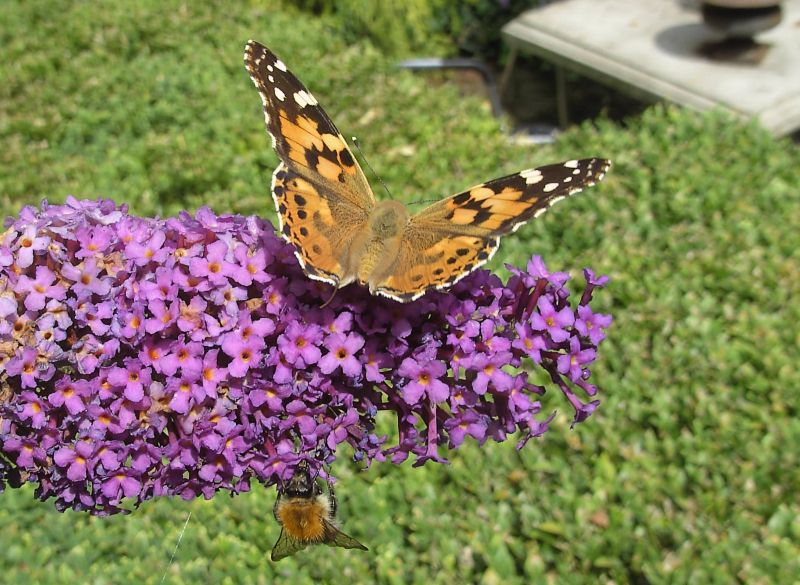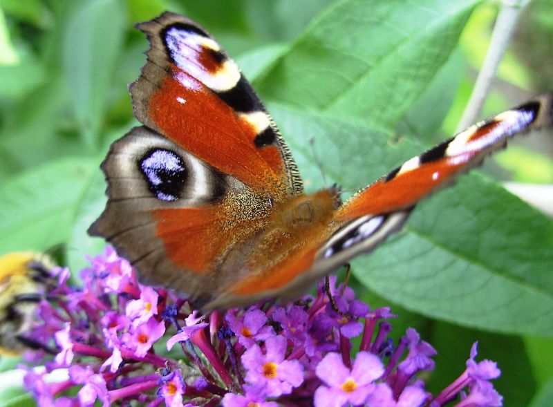 witte Budleya. Het is een nachtvlinder die overdag actief is.