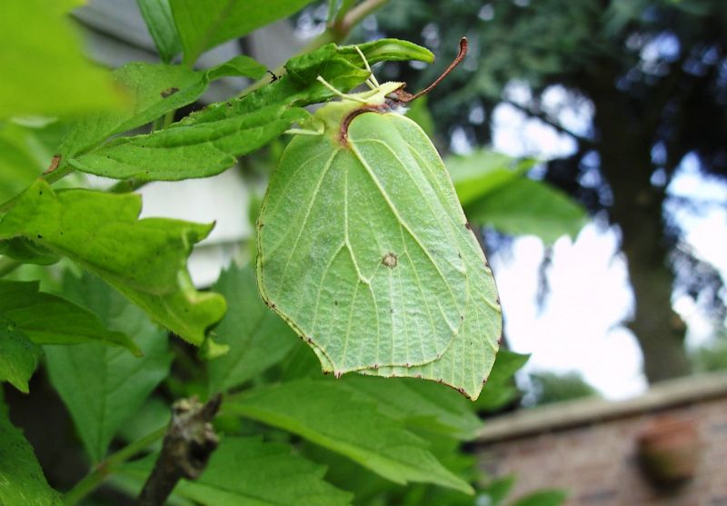 De citroenvlinder heeft in rust altijd de vleugels opgeslagen.