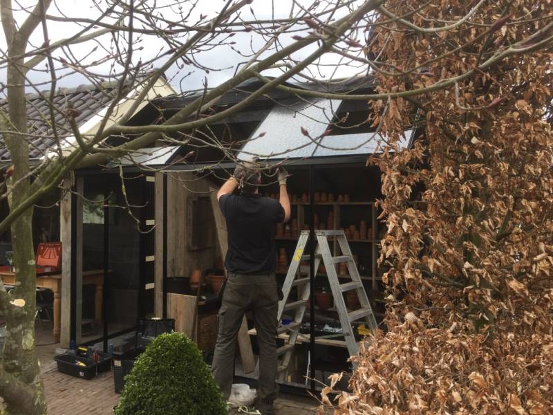 De kassenbouwer heeft op maat het glas gemaakt en vervolgens werd het geplaatst op Paaszaterdag.